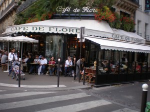 בין המלון לבית ההוצאה-לאור, בשד' סן-ז'רמן 172, מצאתי את קפה דה-פלורה, שהיה בשנות הארבעים מקום מפגש מרכזי לאומנים ואינטלקטואלים פריזאים. היום מבקרים בו בעיקר תיירים אך הוא נראה בדיוק כמו בימים בהם אנשים כמו פאבלו פיקאסו וסימון דה-בובאר נהגו לשבת בו. בחוץ, עומדים שולחנות עגולים ופונים לרחוב. בפנים, מלצרים לבושים בשחור-לבן אלגנטי, מתרוצצים בין השולחנות. אדום וחום הם הצבעים הבולטים ויחד עם הבאר, הם מעניקים למקום ארשת רצינית ומכובדת. קאמי נהג להיפגש כאן עם ידידו הקרוב, ולימים אויבו המר, ז'אן-פול סארטר, שאפילו הכניס את בית-הקפה לכתביו. "בית-הקפה על אווירתו רווית העשן ורחשי קולותיו, על שאון תחתיות הספסלים המתנגשות והצעדים שממלאים אותו הוא הוויה במלואה", הוא כתב. היו אלו תחילת ימי הכיבוש הגרמני, קאמי חזר אז לפאריז לאחר שעזב אותה לזמן מה, ומצא בה אווירת מצור של פטרולים צבאיים, הפסקות חשמל והקצבות מזון, אבל גם חיי יצירה שנמשכו למרות נוכחותם של הנאצים. מחזות הועלו, בתי קולנוע פעלו וספרים המשיכו לצאת לאור.