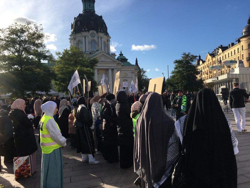 שתי התנועות, הניאו־נאצית והמרקסיסטית־לניניסטית, הביעו תמיכה בסיסמה הפלסטינית "רסקו את הציונות". בהפגנה אחרת שנערכה בכיכר המרכזית של סטוקהולם השתתפו יותר מ–5,000 בני אדם. הנואמים בהפגנה, חלקם פלסטינים וחלקם אנשי שמאל שוודים, קראו ל"אינתיפאדה עד הניצחון" כשהם מניפים דגלי פלסטין, תמונות זוועה מעזה וכרזות נגד הממשלה השוודית התומכת בישראל. באף אחד מהנאומים שנשמעו בהפגנות הפרו־פלסטיניות לא הוזכרה מתקפת חמאס בישראל שבה נהרגו כ–1,300 בני אדם.