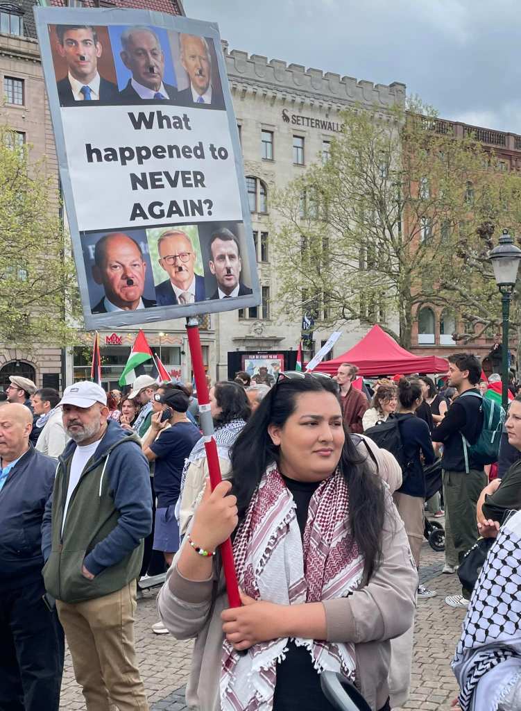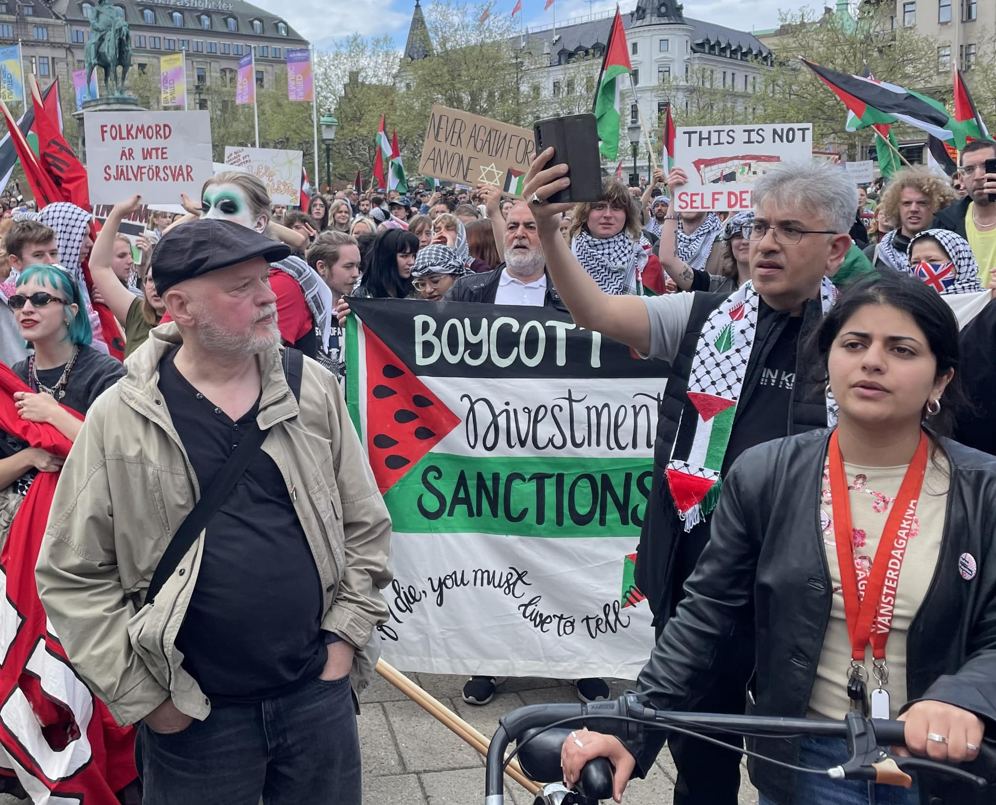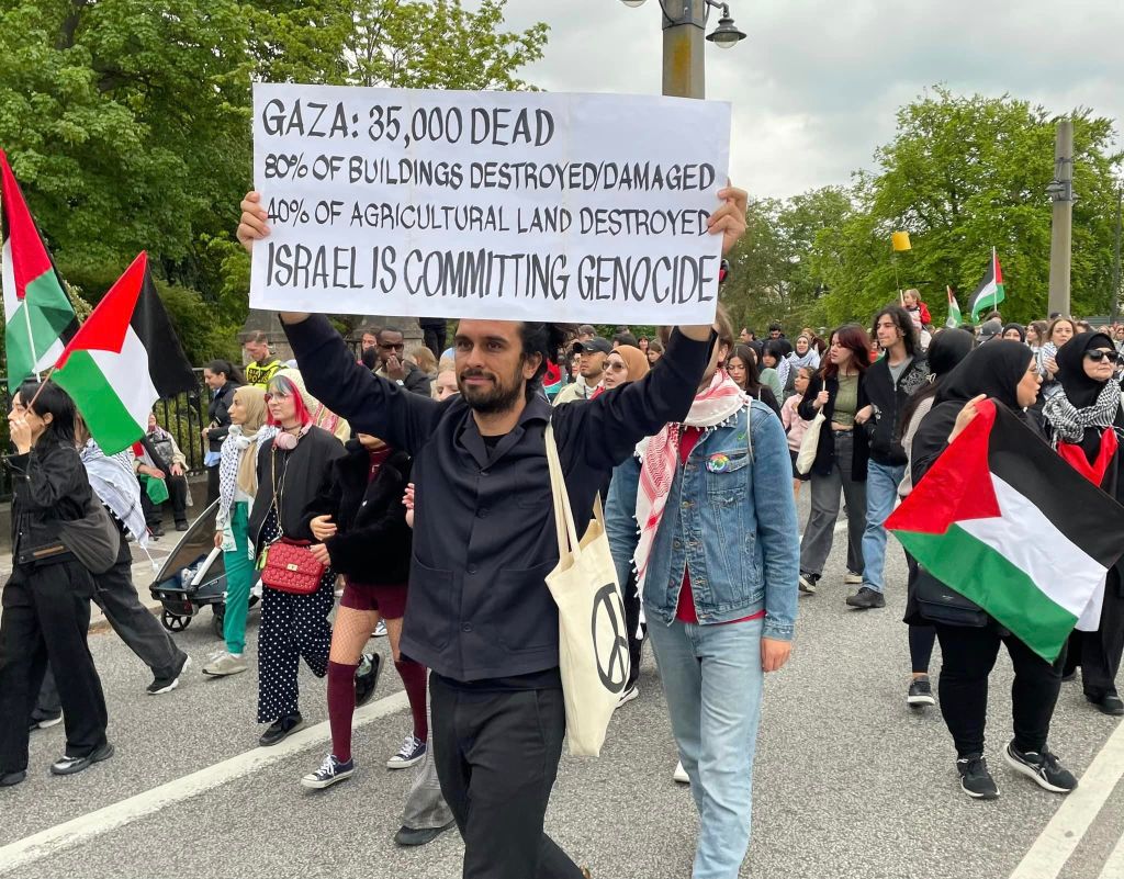 אתמול (חמישי) בשעות שלפני הופעתה של עדן גולן בחצי הגמר השני של האירוויזיון במאלמו, התקיים במרכז העיר אחד מאירועי המחאה הגדולים ביותר שהיו בשוודיה מאז 7 באוקטובר. זה כלל עצרת בכיכר מרכזית, תהלוכה ברחובות העיר ואירוע תרבות גדול בפארק עירוני שכלל הופעות ונאומים. על פי התקשורת המקומית, השתתפו באירועים כ–10,000 בני אדם שביקשו להביע סולידריות עם הפלסטינים בעזה ומחאה נגד ישראל והשתתפותה באירוויזיון.