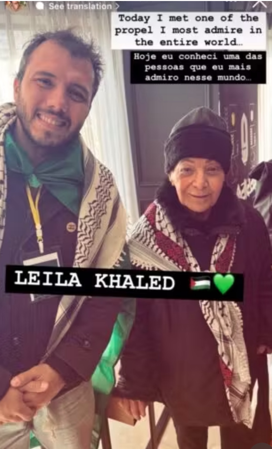 But it seems Ávila is not loyal to only one terrorist organization. In a photo, he is seen posing next to convicted PFLP terrorist Leila Khaled, with a green heart emoji and a Palestinian flag. The caption reads: “Today I met one of the people I admire most in the entire world.” Khaled’s notoriety, it should be remembered, is not based on “human dignity and the power of nonviolent action,” but on her involvement in the hijackings of TWA Flight 840 and El Al Flight 219 in the late 1960s and early 1970s.