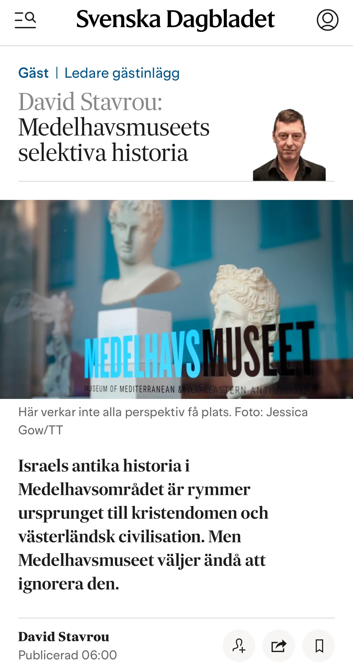 Published in Swedish in Svenska Dagbladet: https://www.svd.se/a/K8Bn37/medelhavsmuseets-selektiva-historia